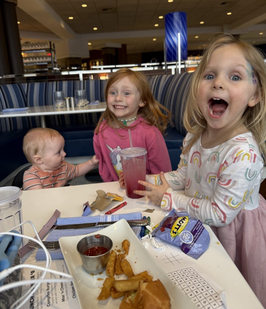 Now that my kids are 4 and 6, they actually love going out to eat. It feels like such a fun family treat, and they know what to expect. All those early outings — even the chaotic ones — helped teach them how to handle it.