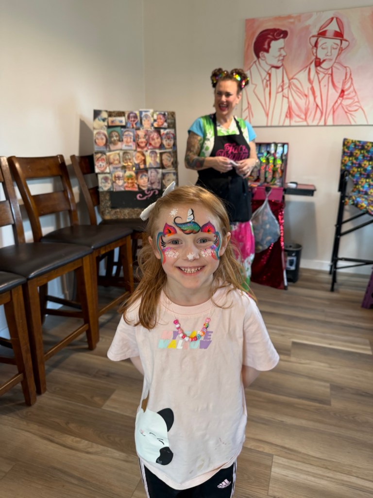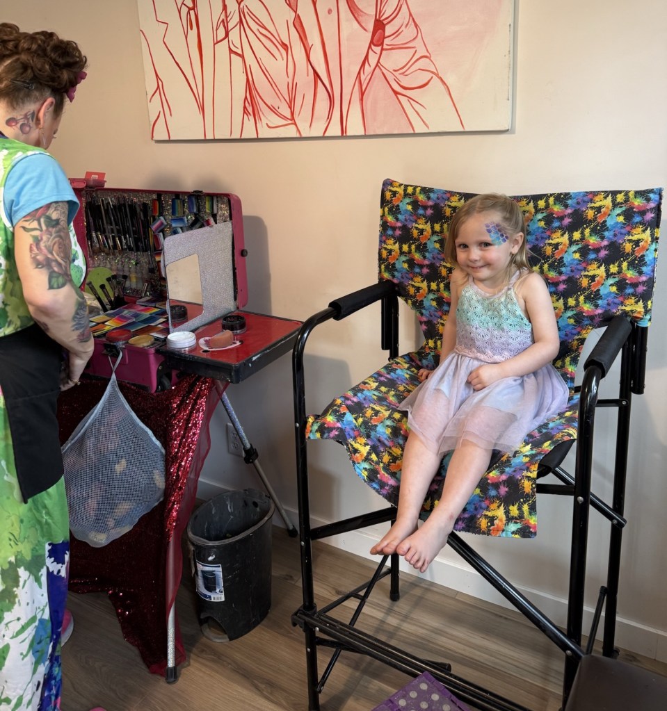 Watching her stand in front of it with her little dress and face paint, waving at everyone like she owned the place — that was everything.
