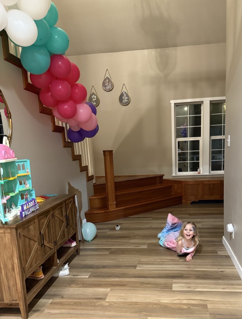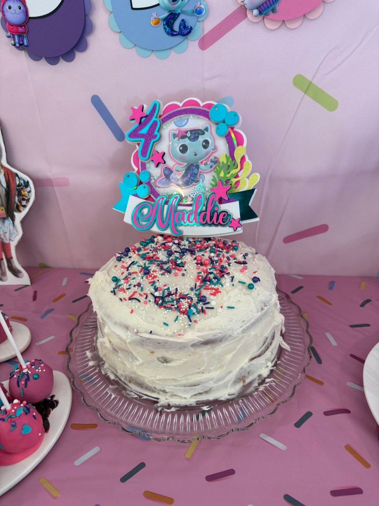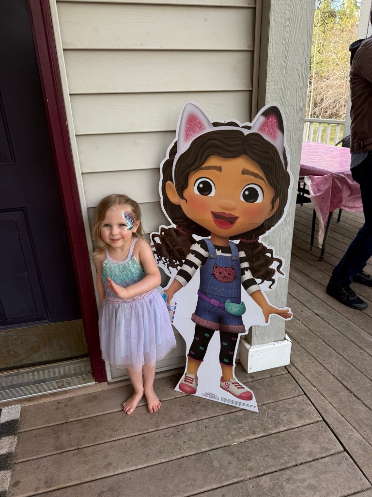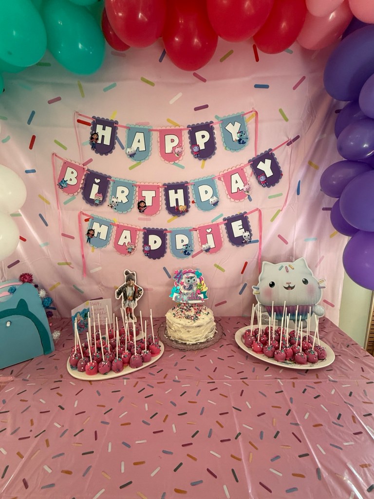 She has loved Gabby’s Dollhouse for so long, so when she said that’s what she wanted for her birthday, there was no hesitation. Pink, cats, sparkles — we were all in.