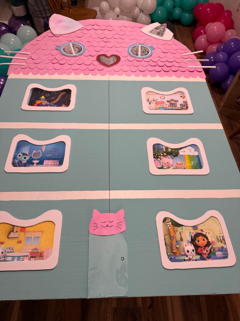 If you already have the Gabby’s Dollhouse toy, it’s the easiest way to create a statement piece without spending a fortune. (Here’s a link to the Dollhouse if you want to use the cute toy for your party decor).