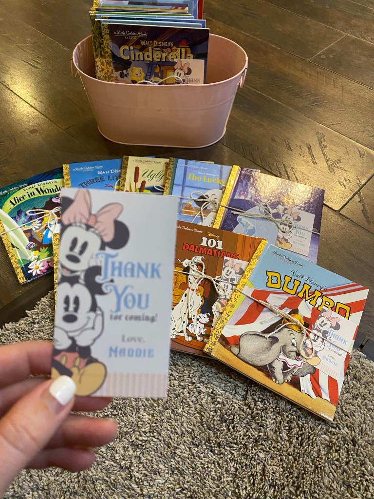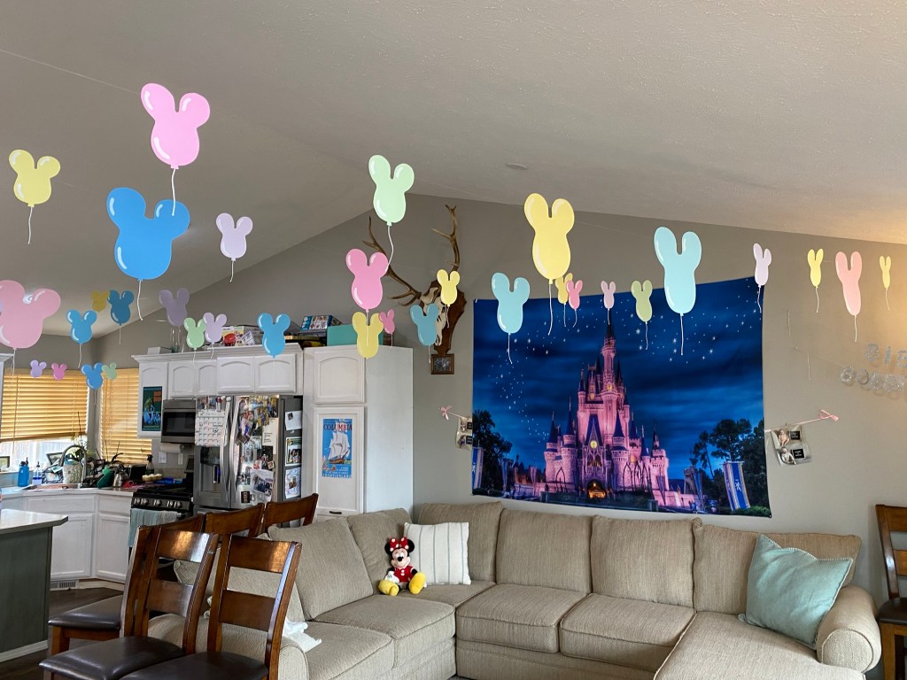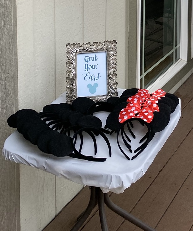 We had Mickey and Minnie ears laid out so each guest could pick their own to wear—just like stepping into Disneyland!