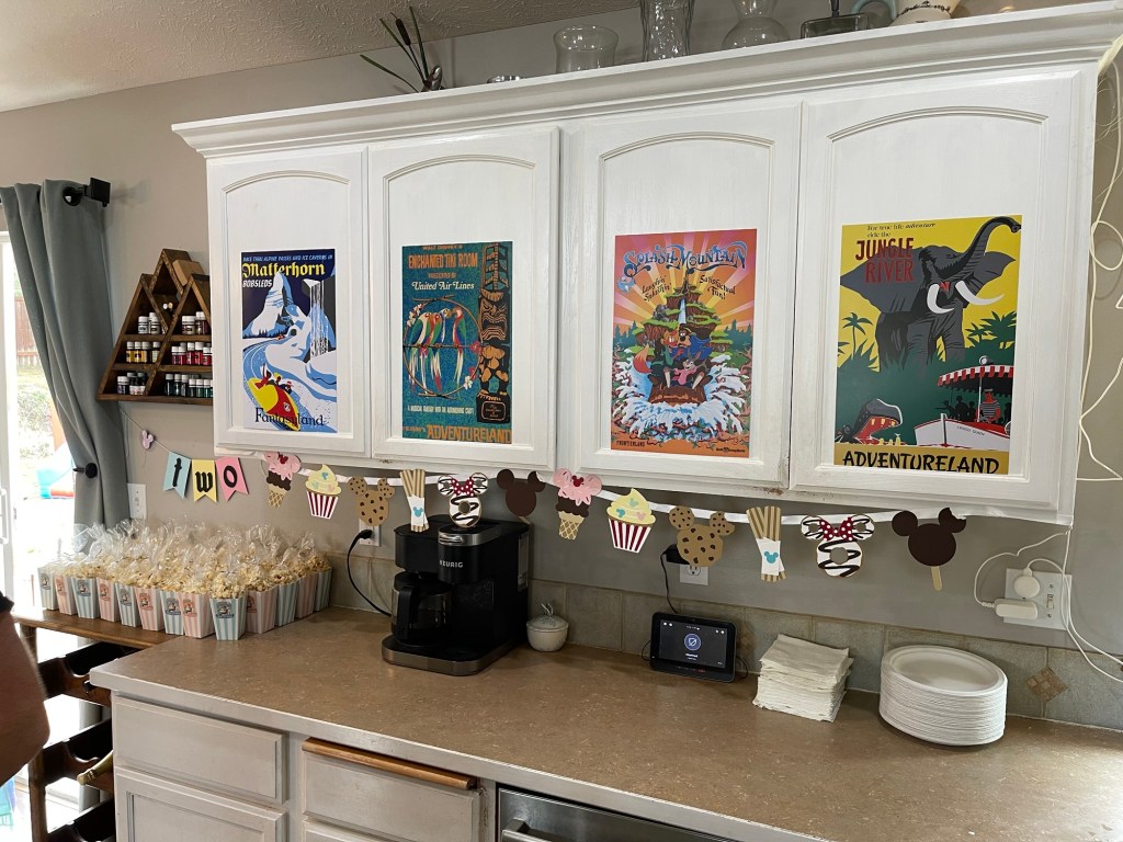 To make the party feel even more like Disneyland, we added vintage-style ride posters all around the house.
