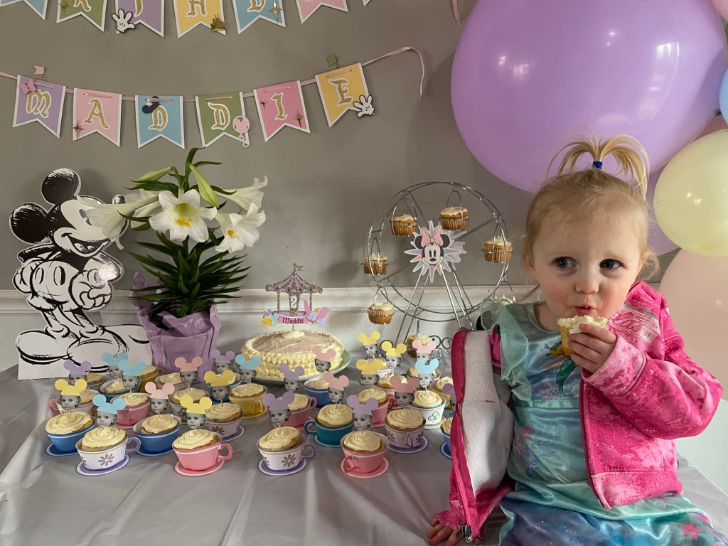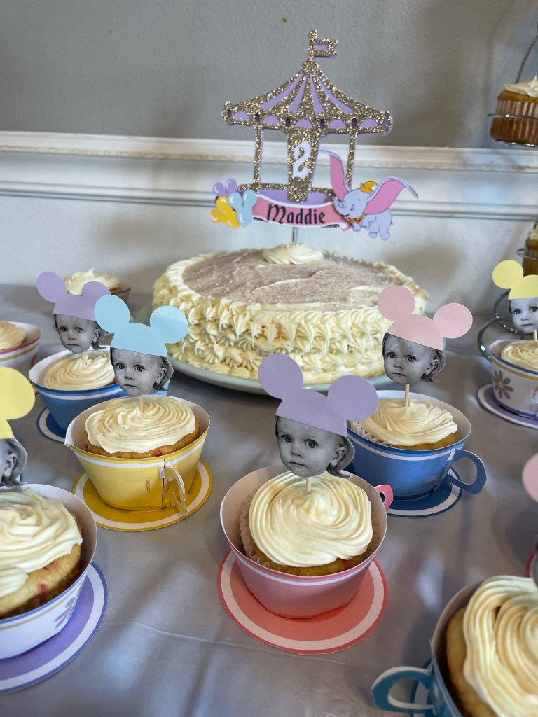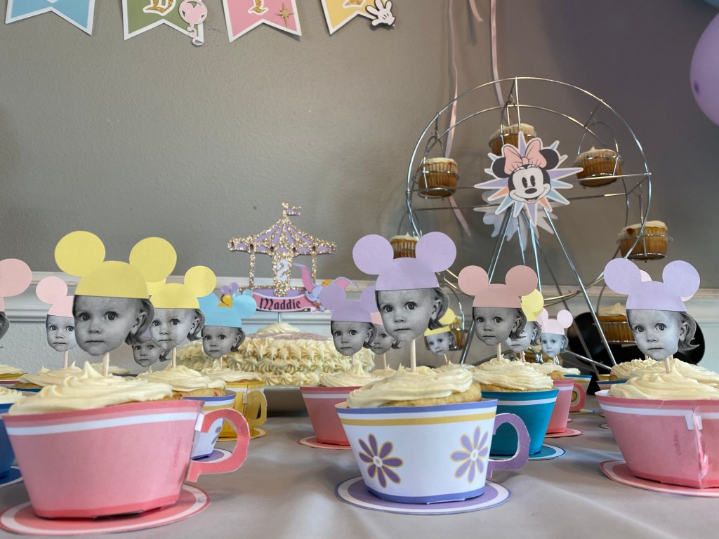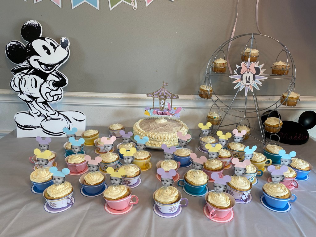 From Main Street-inspired popcorn boxes to teacup cupcakes and a pastel balloon-filled room, this party truly felt like stepping into our own little version of Disneyland.