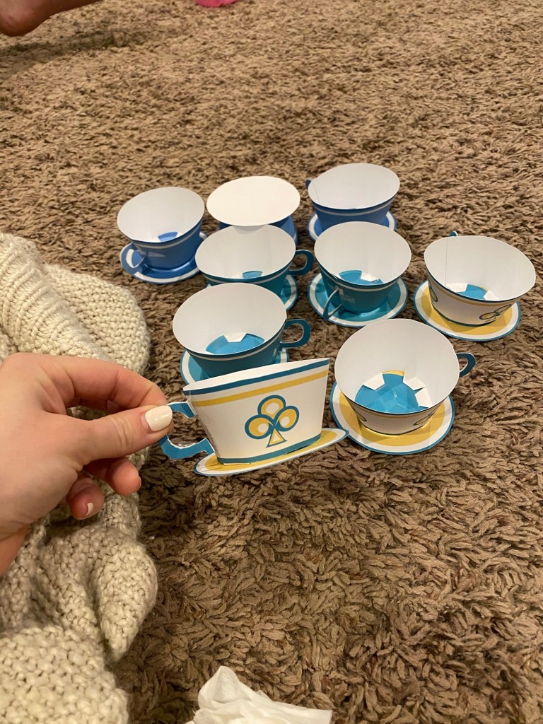 I actually used a digital download for the teacup wrappers, then printed, cut, and assembled them myself—and they were so easy to put together.