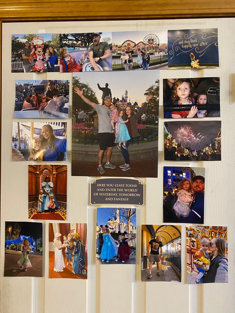 We printed out some of our favorite moments—from rides and character meet-and-greets to castle photos—and displayed them together to create a space that felt really personal and meaningful.