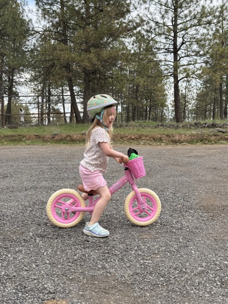 Pink Strider Bike with Basket — her aunt, uncle, and cousin got this for her and she was so excited to have a bike of her own! She especially loves that it lights up and that she can carry her dollies in the basket 🥹💕