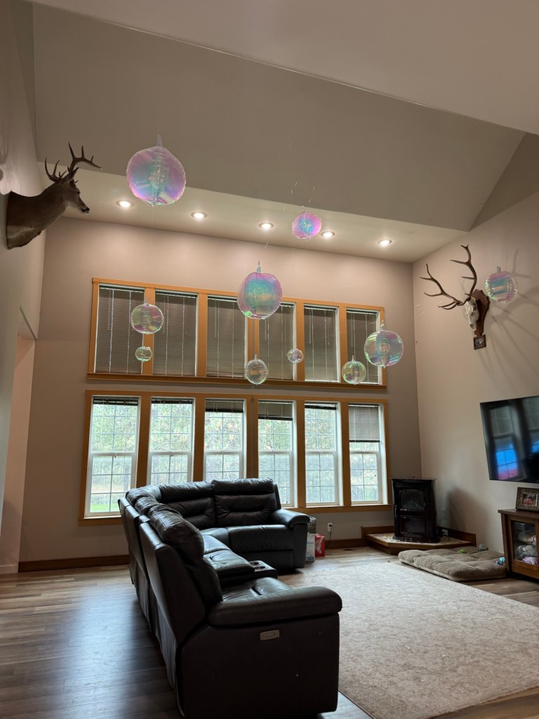 To carry the theme throughout the entire house (not just the main party backdrop), we added giant iridescent “bubble” balloons floating in our living room. They caught the light in the prettiest way and gave off that magical, Glinda-in-her-bubble kind of vibe. It made everything feel more immersive and whimsical, like you were stepping into a little world of magic the moment you walked in—and it ended up being one of my favorite details from the whole party ✨