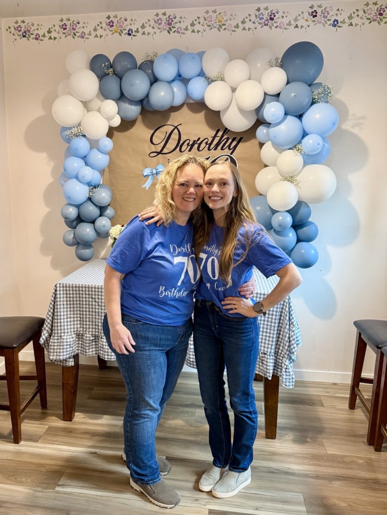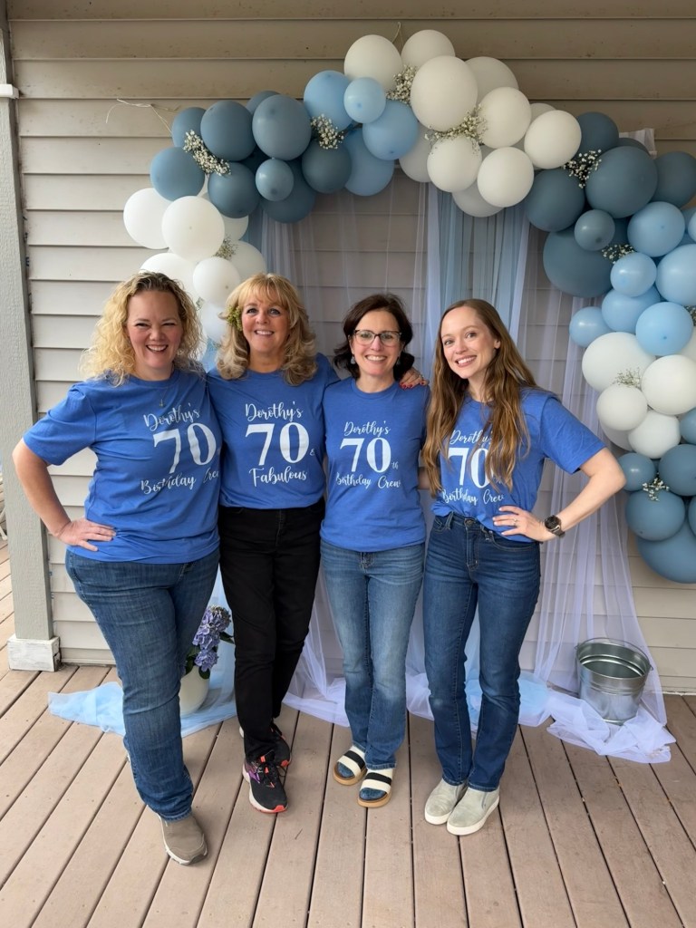 One of the sweetest surprises of the day was the matching shirts. Anita came all the way from Alaska with her family and brought shirts for all of the sisters—and Dorothy too.