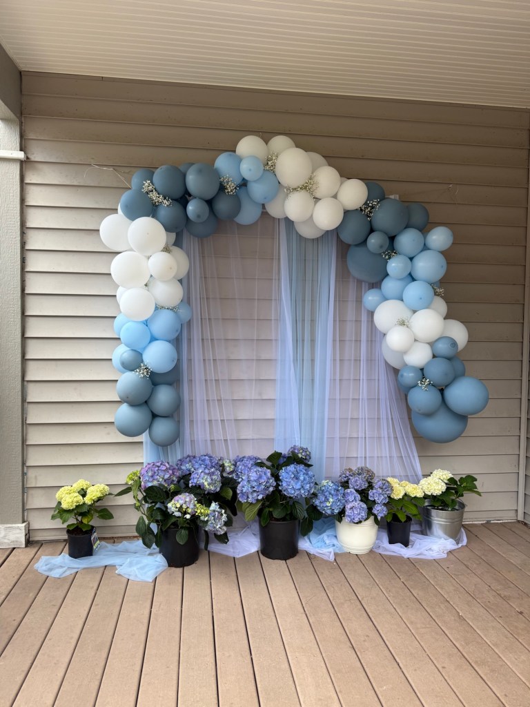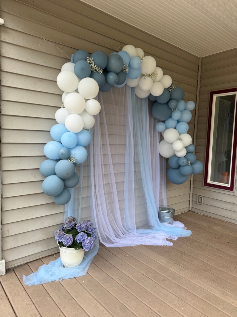 I used this dusty blue ribbon on the mason jars, and it added the prettiest finishing touch to the arrangements. - Dusty Blue White Balloon Arch Kit: 👈🏼This is the balloon arch kit I used, and I genuinely loved it. The dusty blue tones were perfect for the look I was going for, and the quality was great compared to other kits I’ve tried. I used it across three different areas for the party, and it held up beautifully the entire time.