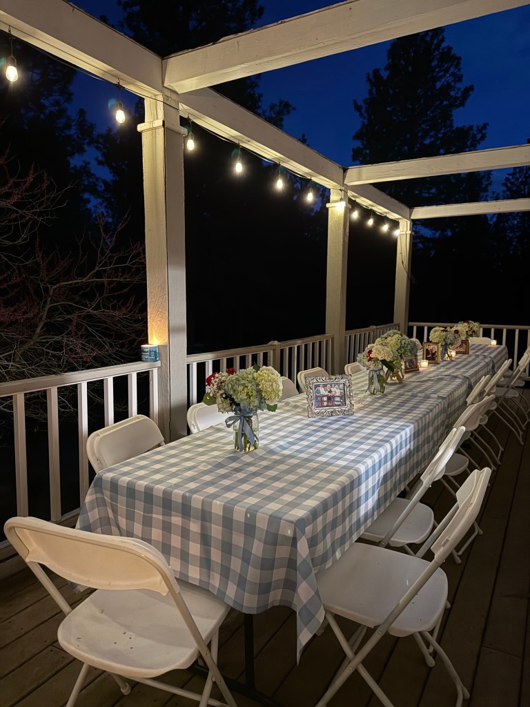 We set up a long outdoor table to bring everyone together, which made the night feel intentional and connected.