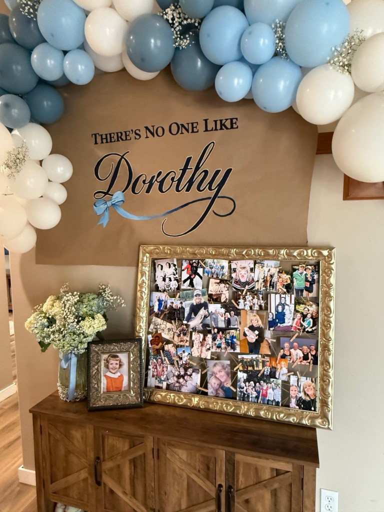 Dorothy, my Mother-in-law once told me that her name has always been tied to The Wizard of Oz—it was how people remembered her: “Dorothy, like the movie.” When she shared that, it instantly sparked an idea. I didn’t want to throw an over-the-top themed party, but instead create something that felt timeless, elegant, and personal—with subtle nods to Dorothy and the story behind her name. Since she truly loves her name (and is even talking about getting a ruby slippers tattoo!), it felt like the perfect inspiration. So I leaned into a softer, more refined version of the theme—something classic and beautiful, with just a hint of magic woven in.